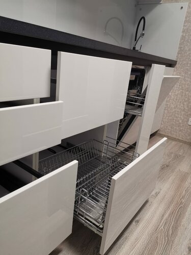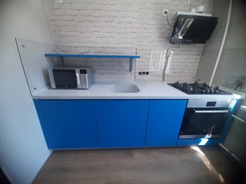 Помогли с подбором кухни, с выбором техники. Поработали на совесть и сделали всё в срок. Привезли и установили кухню в оговоренные сроки.